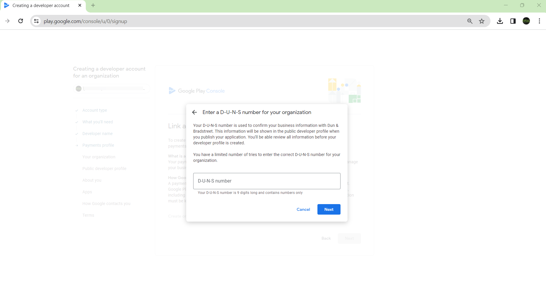 - Enter a D-U-N-S Number for your Organization